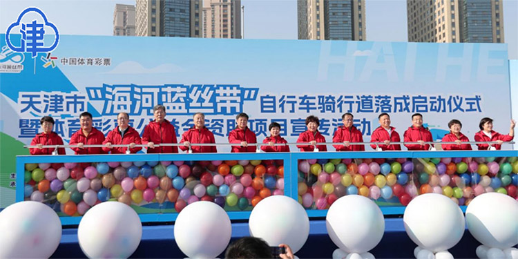 10月22日,天津市“海河蓝丝带”自行车骑行道落成启动仪式在天津湾公园隆重举行,张玲副市长出席。“海河蓝丝带”是非竞速骑行线路,起点为天津湾公园,沿台儿庄路至刘庄桥,由刘庄桥沿海河东路经光华桥、国泰桥、富民桥、海津大桥、春意桥至吉兆桥,由吉兆桥沿台儿庄南路、海河西路至天津湾公园,形成闭环,全程15.8公里。