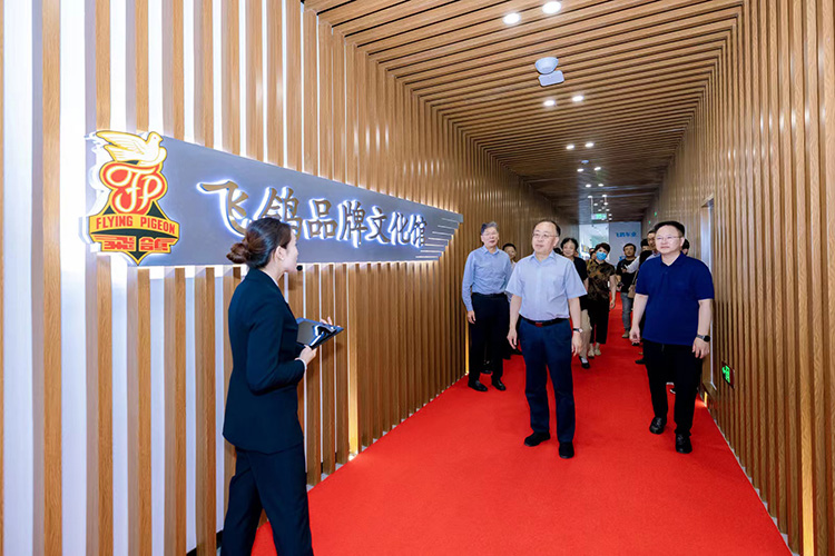 开馆仪式结束后,全体嘉宾共同参观了品牌文化馆,共同聆听飞鸽故事,感受飞鸽文化。张勇指出,飞鸽要始终坚持不断探索,创新宣传形式,在保证产品质量基础上,不断拓宽消费市场,推动线上线下共同发力,让老字号、老品牌焕发新活力,为天津高质量发展作出飞鸽的突出贡献。