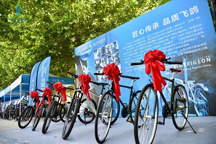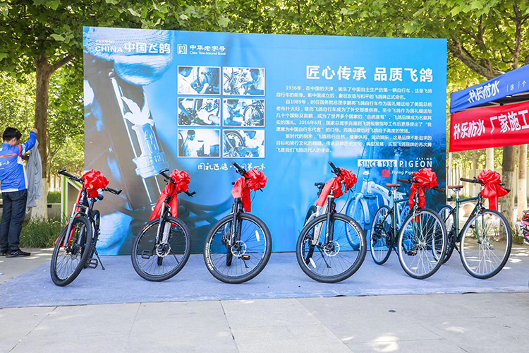活动现场展示了飞鸽经典老款自行车“二八大杠”和最新推出的中国飞鸽1950全碳系列公路车、山地车。通过新老产品直观的对比充分展现出 “一只飞鸽一辆车,一段历史一座城” 这张“津”字名片。几十年来飞鸽自行 车承载了几代人的温馨回忆,始终坚持工匠精神,不断满足人民群众的需求,从实用、耐用的代步工具逐步走向健康生活理念的引领者。不负“中国第一车”的美誉。